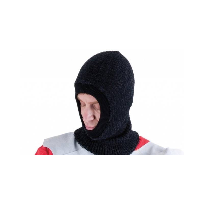 Pružná pletená kukla RIMATARA s otvorom na tvár, 100 % acryl, čierna.