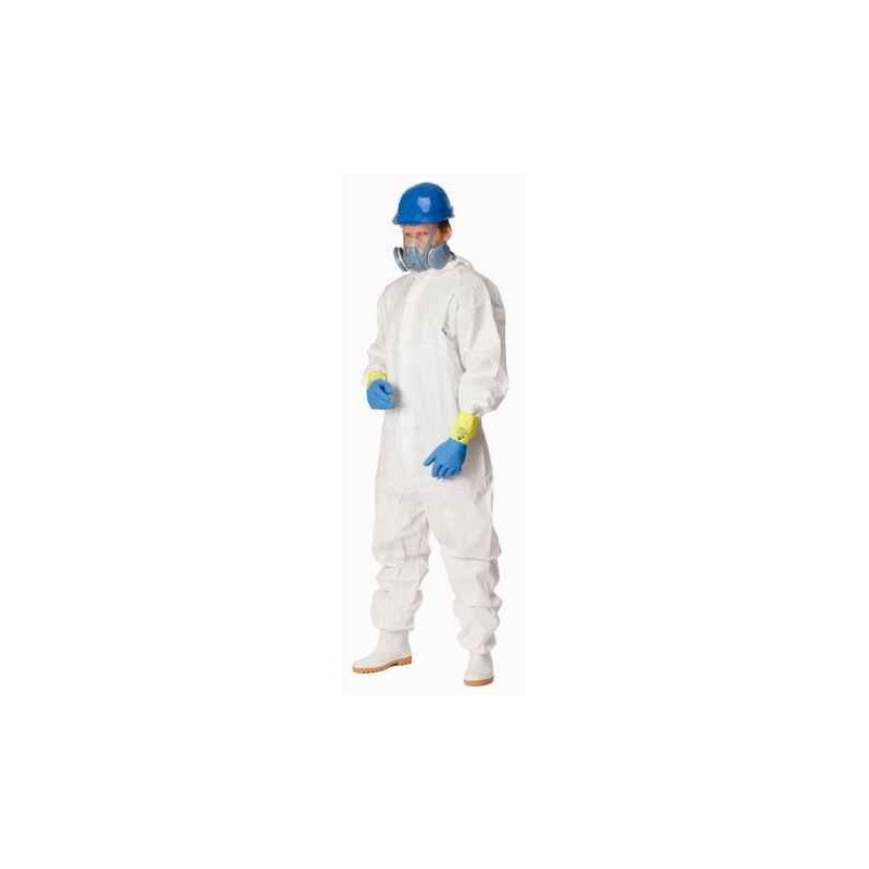 Ochranná antistatická kombinéza s kapucňou CHEMSAFE 500, s mikroporéznou paropriepustnou vrstvou, samolepiacou príklopkou na zips a s gumičkou sťahovateľnými rukávmi a nohavicami. Odev patrí do kategórie CE III, typ 5 a 6, je odolný radu chemikálií, prieniku rádioaktívnych častíc a infekčných agensov. Materiál netkaný polypropylén s mikroporéznou vrstvou, biela.
