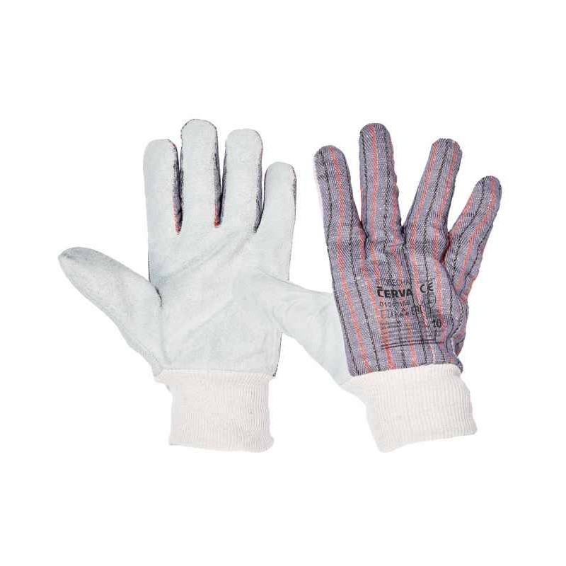 STONECHAT-Rukavice z hovädzej štiepenky v dlani s podšívkou, chrbát a manžeta z tkaniny. Pružná manžeta, veľkosť 10.