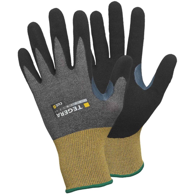 Nylonová rukavica TEGERA®8805, polomáčaná v čiernom penovom nitrile, proti prerezaniu.