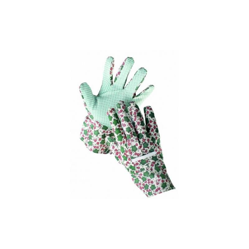Pracovné rukavice AVOCET šité z farebnej bavlnenej tkaniny, s PVC terčíkmi v dlani a na prstoch, veľkosť 9.