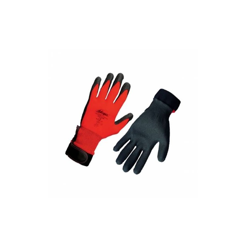 Pracovné rukavice JACDAW. Pletené, bezšvové, nylonové rukavice (15GG), s nánosom HPT PVC v dlani a na prstoch a pružnou manžetou na suchý zips.