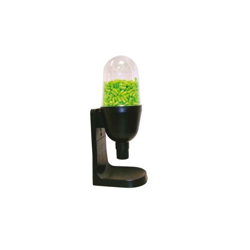 Dávkovač ušných zátok, zásobník na 750 párov, čiernej farby, možnosť upevnenia na stenu, dodáva sa bez náplne.